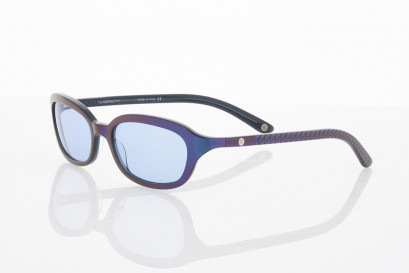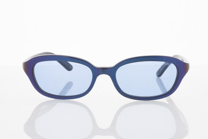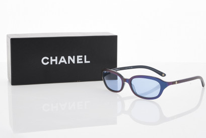 blue purple metallic accetate, patterned arms, stamped 'Chanel Made in Italy' -