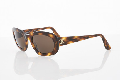 tortoiseshell accetate with quilted pattern on arms, 'CC' logo, stamped 'Chanel Made in Italy' -