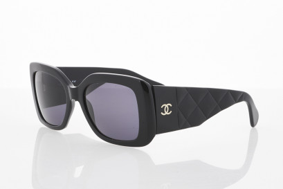 black accetate with quilted pattern on arms, 'CC' logo, stamped 'Chanel Made in Italy' (A/F) -