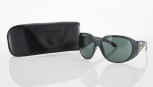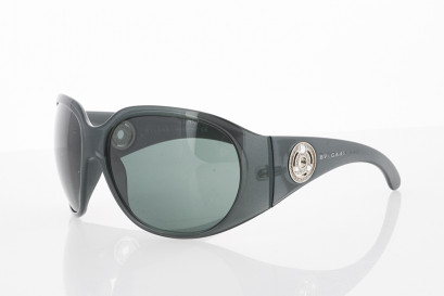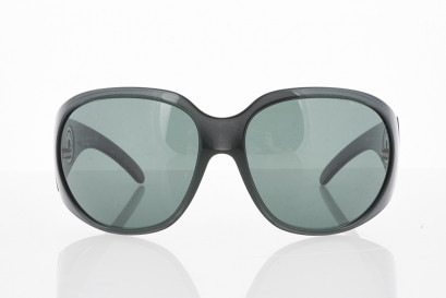 black acetate with grey and black pebble side stones, featuring 'CC' logo, stamped 'Chanel' -