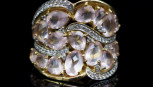 Lot Description:Rose quartz, diamond & 9ct yellow gold ring