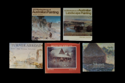 Around the Boree Log, illustrated by Patrick Carroll (with additional artist information); "100 Masterpieces of Australian Landscape Painting"; "100 Masterpieces of Australian Painting"; "Turner Abroad"; and "Claude Monet - Painter of Light". (5) -