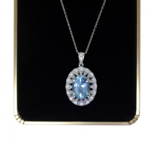 Lot Description:18ct White Gold Aquamarine & Diamond Pendant with Chain