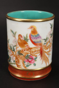 Lot #332 - Fine Chinese Porcelain Famille Vert Brush Pot