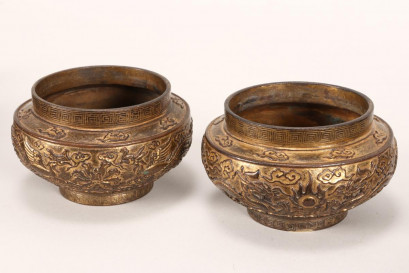 Lot Description:Pair of Chinese Gilt Bronze Censers