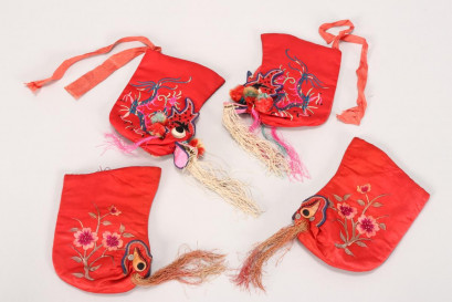 Lot Description:Two Pairs of Chinese Embroidered Satin Booties