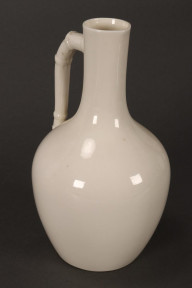 in blanc de chine, of baluster form, with bamboo style handle, printed mark to base, height 21cm -