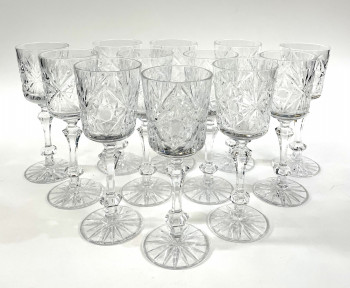 Lot Description:Ten Cut Crystal Wine Goblets with Star Detail