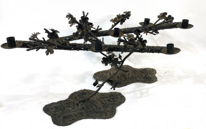 Lot Description:A Pair of Black Wrought Iron Candelabras with Cherry Blossom Detail
