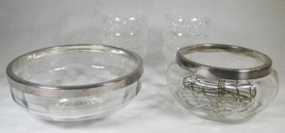 with silver plated rim with another large crystal salad bowl with silver plate rim largest measures 21.2cm W (8) -