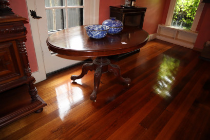 Lot Description:Antique walnut Loo table with carved base
