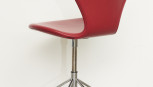 manufactured by Fritz Hansen, red leather upholstery, chromed steel, on castors, retains manufacturer's label