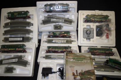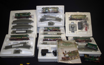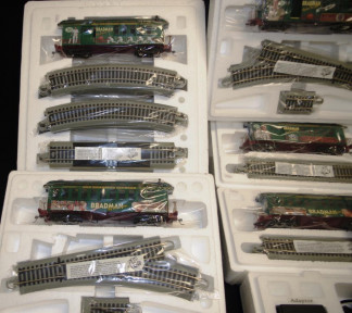 honouring the life and legend of Don Bradman, with O scale train designed to run on HO gauge track; sets 1-8 including locomotive & tender, coaches (7), track, power pack & controller. Most still in original packaging -