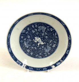 Lot Description:A Chinese Blue & White Dish Depicting Infant Among Flowers