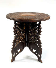 Lot Description:A Vintage Sinhalese Carved Timber Folder Table with Elephant & Foliage Detail