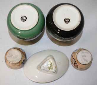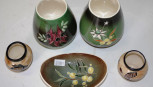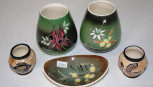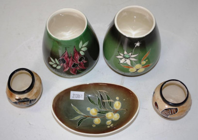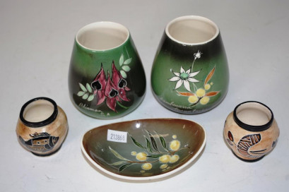 including 2 ANNA studio vases height approx 9cm, Studio Anna wattle dish together with two small aboriginal design vases -
