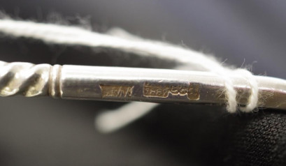 engraved decoration with inscription to bowl of spoon, twist form handle, (length 19cm; weight 60grams approx). -