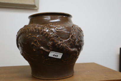 Lot #449 - Brown glazed dragon decorated jardiniere