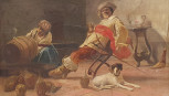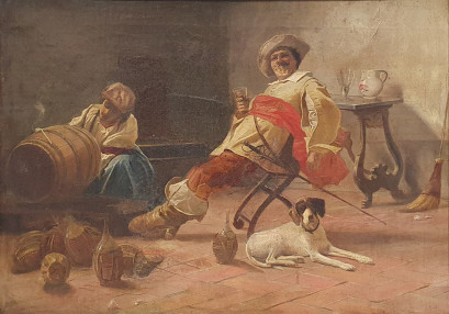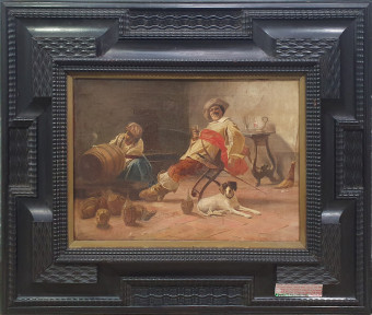 by Andrea Picchi, partial original maker' slabel verso, with original oil painting, of tavern scene. Dim: 59 x 71 cm cm (frame).