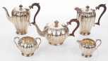 comprising a teapot, coffee pot, hot water pot, cream jug and sugar bowl, hallmarked (5)