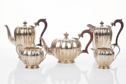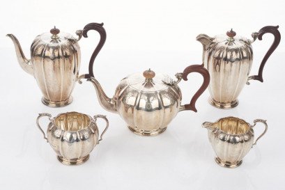 Lot Description:Sterling Silver Coffee and Tea Service Mark of Hardy Brothers, Birmingham, 1953