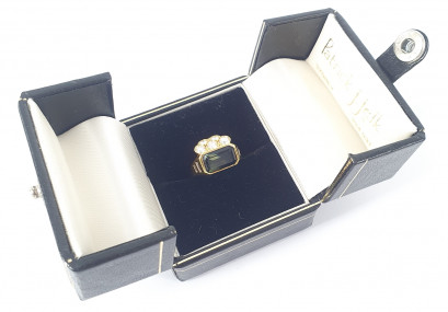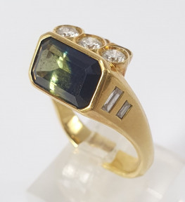 Australian sapphire and South African diamonds. Weight 8.31g. Size J. -
