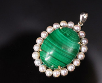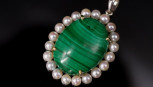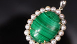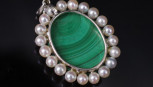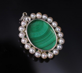 Lot Description:Malachite & pearl set 18ct white gold pendant