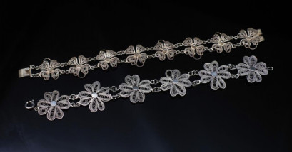 Lot Description:Two silver filigree floral panel bracelet
