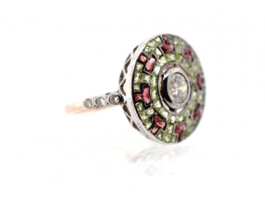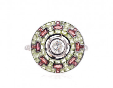 Lot Description:Diamond*, peridot & garnet set cocktail ring