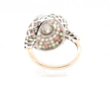 Lot #1430 - Diamond*, peridot & garnet set cocktail ring