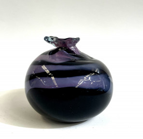 Lot Description:An A J. Rees Art Glass Mauve Ovid Posy Vase with Swirl Detail, 1992
