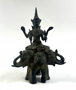 Lot Description:A Thai Bronze Buddha Figure Seated on a Tri Elephant Base, 19th Century