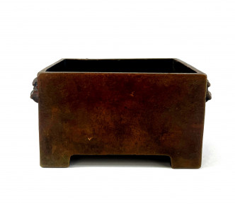 Lot Description:A Chinese Bronze Rectangular Censer with Liondog Detail