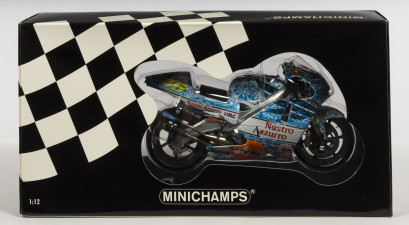 Lot Description:HONDA: A NOS 1:12 scale Minichamps Honda NSR 500 Team Nastro Azzuro #46 Valentino Rossi GP Mugello 2001 die-cast model