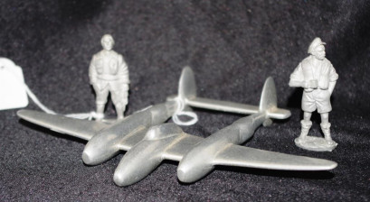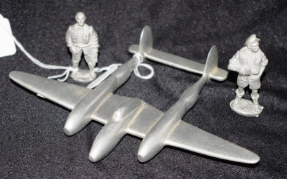 (13cm x 19cm approx), together with 2x cast metal pilot figures -