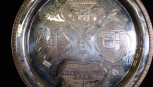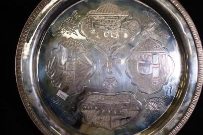 marked 925, with etched Oman crest and traditional scenes, approximate total weight 1790 grams, in original box -