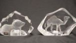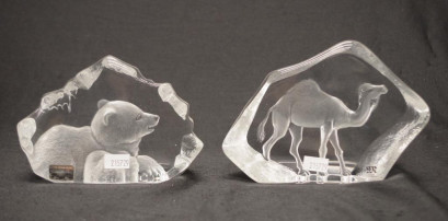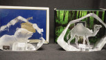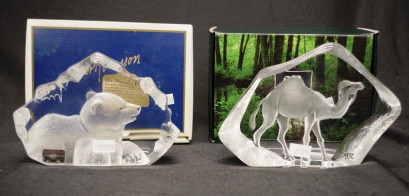 the camel from the wildlife series #33728, and the bear cub from the signature collection, both etched to base and with original boxes, height 12cm approx -