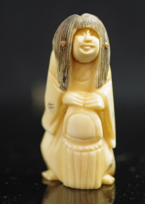 traditional standing figure, with rotating head, signed to base, (height 5cm approx). -
