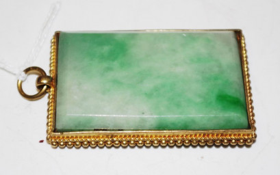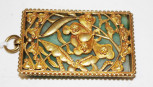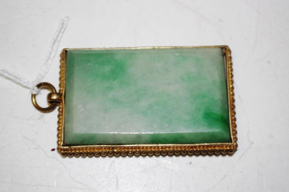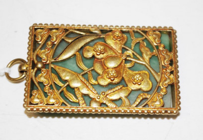 Lot Description:Chinese stone & pierced brass framed pendant