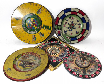Lot Description:Four Vintage Tin Plate Spinner Game Boards including The Kinco Roulette