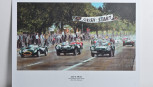 featuring 'D' Type Jaguars at the 1956 Australian Tourist Trophy, Albert Park, Melbourne, on thick paper stock; measures approximately 29.5 cm high, 42 cm wide overall. -