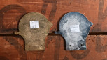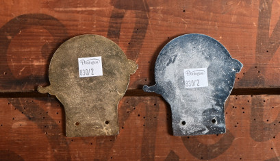one chrome, other brass, both with Jaguar 'leaper' motifs; each badge with approximate diameter of 9cm. -