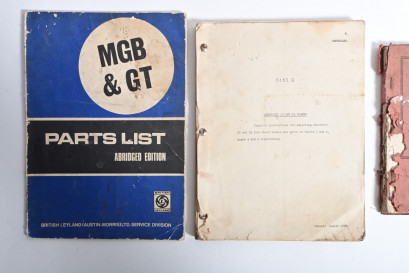 details operational and repair data, 144 pages, brown covers with some paper loss, a typed, with original diagrams PART II CHEVROLET AC AND LQ BRAKES' instructional manual detailing brake adjustments, 108 pages, 'MGB & GT PARTS LIST (ABRIDGED EDITION) AKD 5303, Edition 1, published 1971; and one other. -