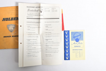 manual details maintenance procedures, 43 pages, with pen writing, with 1950's Blaupunkt Auto Radio SERVICE manual and schematic circuit diagram; together with 'SHELLUBRICATION' envelope. -