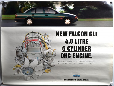 Lot Description:FORD: Two Ford Falcon GLi (EB) posters depicting the car and the 4.0 Litre 6 Cylinder OHC Engine