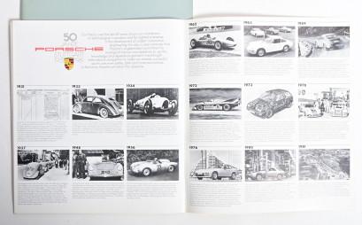 each detail the Porsche 911, 924, 944, 928 models with sales narrative and exterior and interior pictures, specifications, model engineering detail, 1981 brochure with commemorative 50 year Porsche history to rear, 1983 brochure with Porsche motorsport history to rear. 1981 brochure with slight discolouration to cover edges. 1981 brochure Code WVK 121 420, 1983 brochure Code WVK 104 120. -