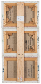inscribed verso: DG05794 / Minnie Pwerle / Awelye Atnwengerrp / 2004 / AKG1438 / DG05798 / Minnie Pwerle / Awelye Atnwengerrp / 2004 / DG05799 / Minnie Pwerle / Awelye Atnwengerrp / 2004; bears Dacou stamp verso -