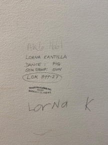signed verso: Lorna K; inscribed verso: Lorna Kantilla / Dance: Pig / Skin Group: Sun / LOK 399-27 -