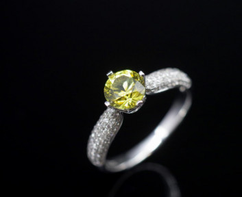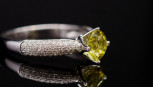 Lot Description:Bright yellow green sapphire, diamond & 14ct white gold pave ring