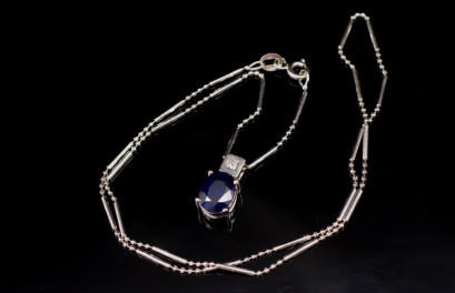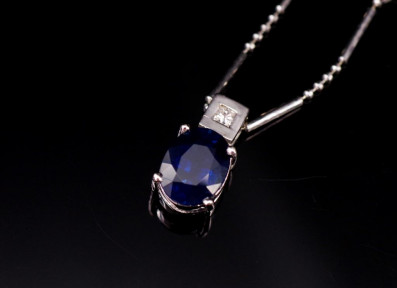 Lot Description:Sapphire, diamond & 18ct white gold pendant & chain